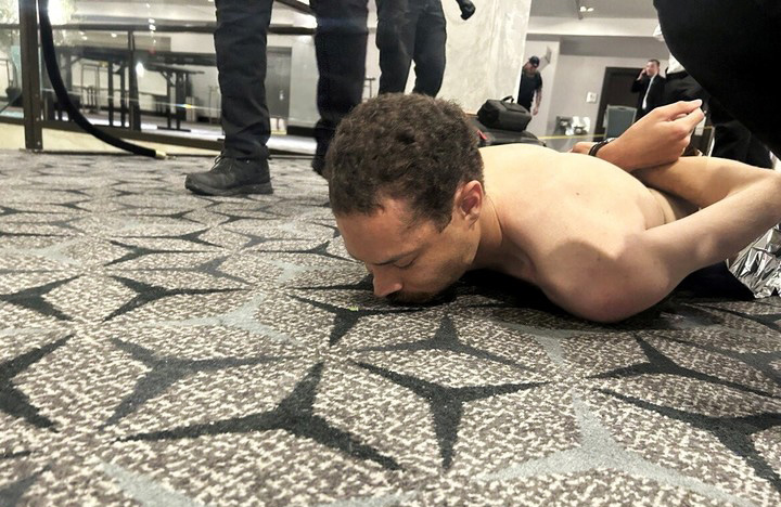Intentó abalanzarse hacia el amplio salón de baile, pero fue derribado en una escena caótica que incluyó disparos, mientas el presidente Donald Trump era evacuado de forma apresurada del escenario y los invitados se agachaban para cubrirse debajo de sus mesas.