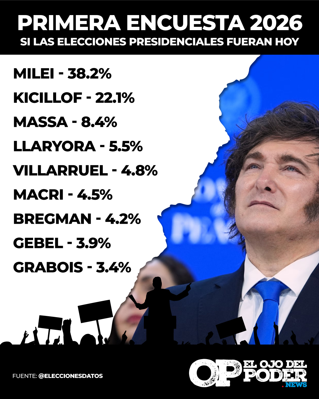 La primera encuesta del año refleja una polarización marcada entre el Presidente y Axel Kicillof. Sin embargo, el desgaste económico y la irrupción de figuras no tradicionales como Dante Gebel empiezan a fragmentar el voto de derecha y centro.