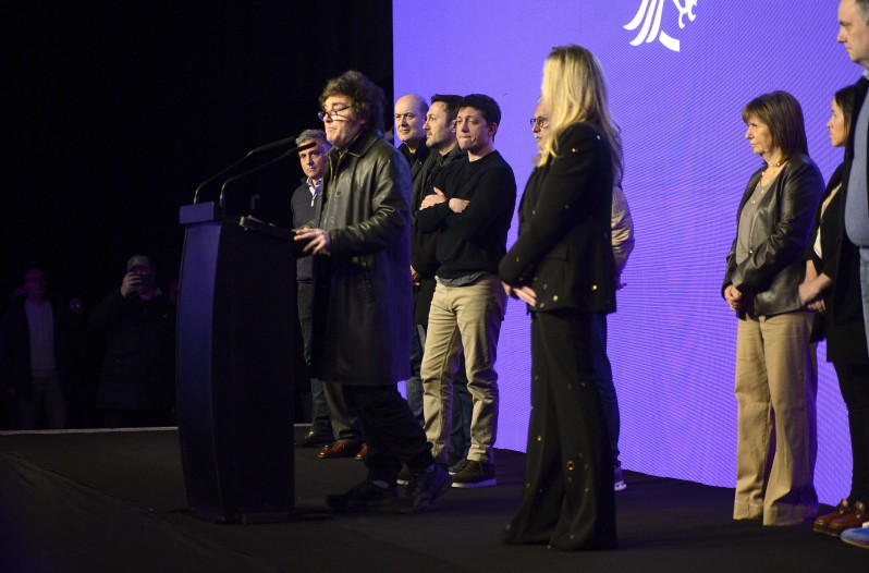 “Hemos tenido una clara derrota”, dijo el presidente ante un búnker abatido. Lo puso a Santiago Caputo a su lado.